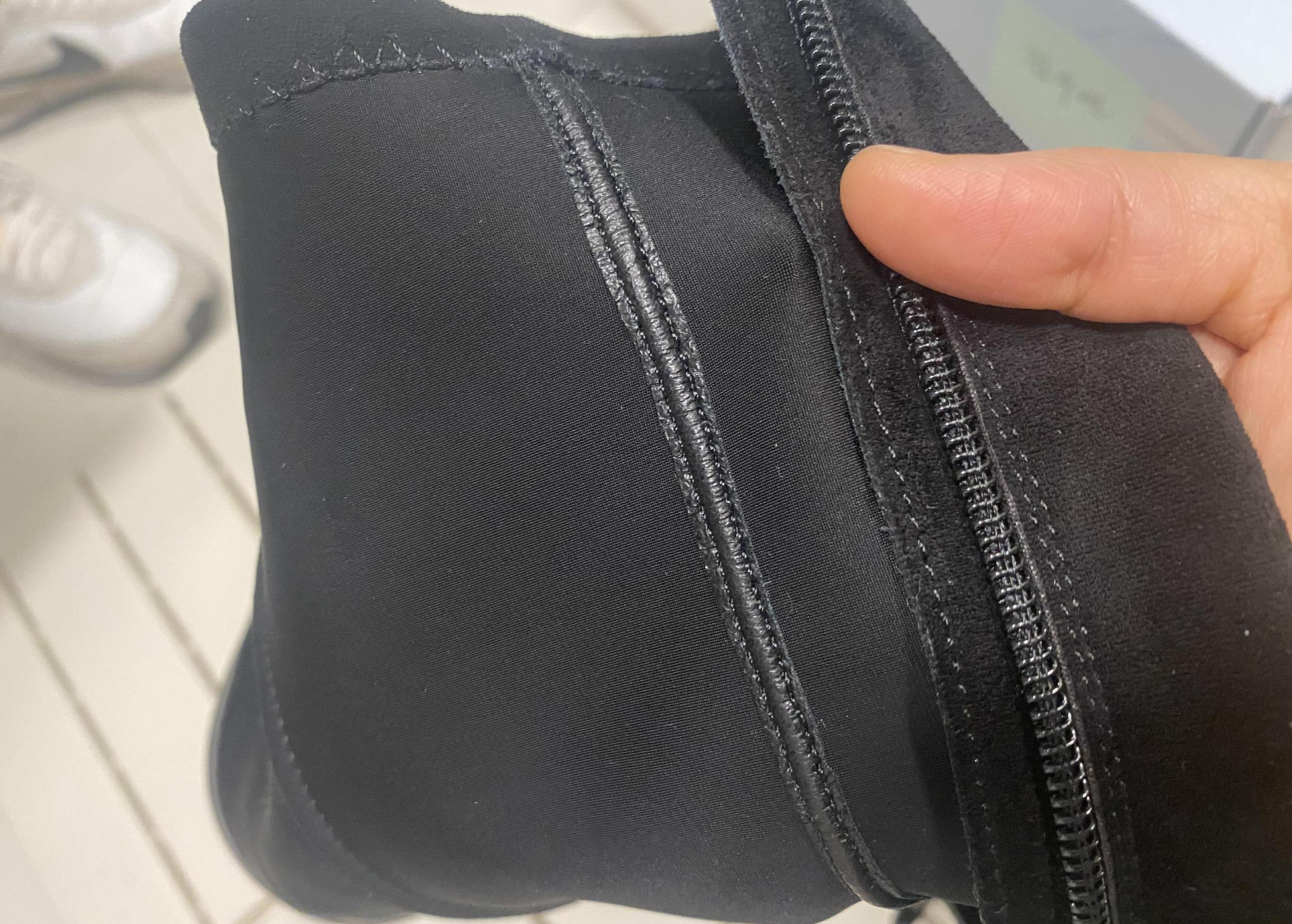 롱부츠 자체에 약간의 스판끼도 있어서 다리를 구부리거나 펼때 편해요. 그리고 굽에 있는 포인트색이 눈에 띄어서 부츠를 더 고급지게 만들어 줍니다. 스판 롱 부츠로 딱 입니다. 종아리가 좀 두꺼운 편이시라면 롱 부츠 종아리 부분이 그대로 딱 나올 거 같아요.